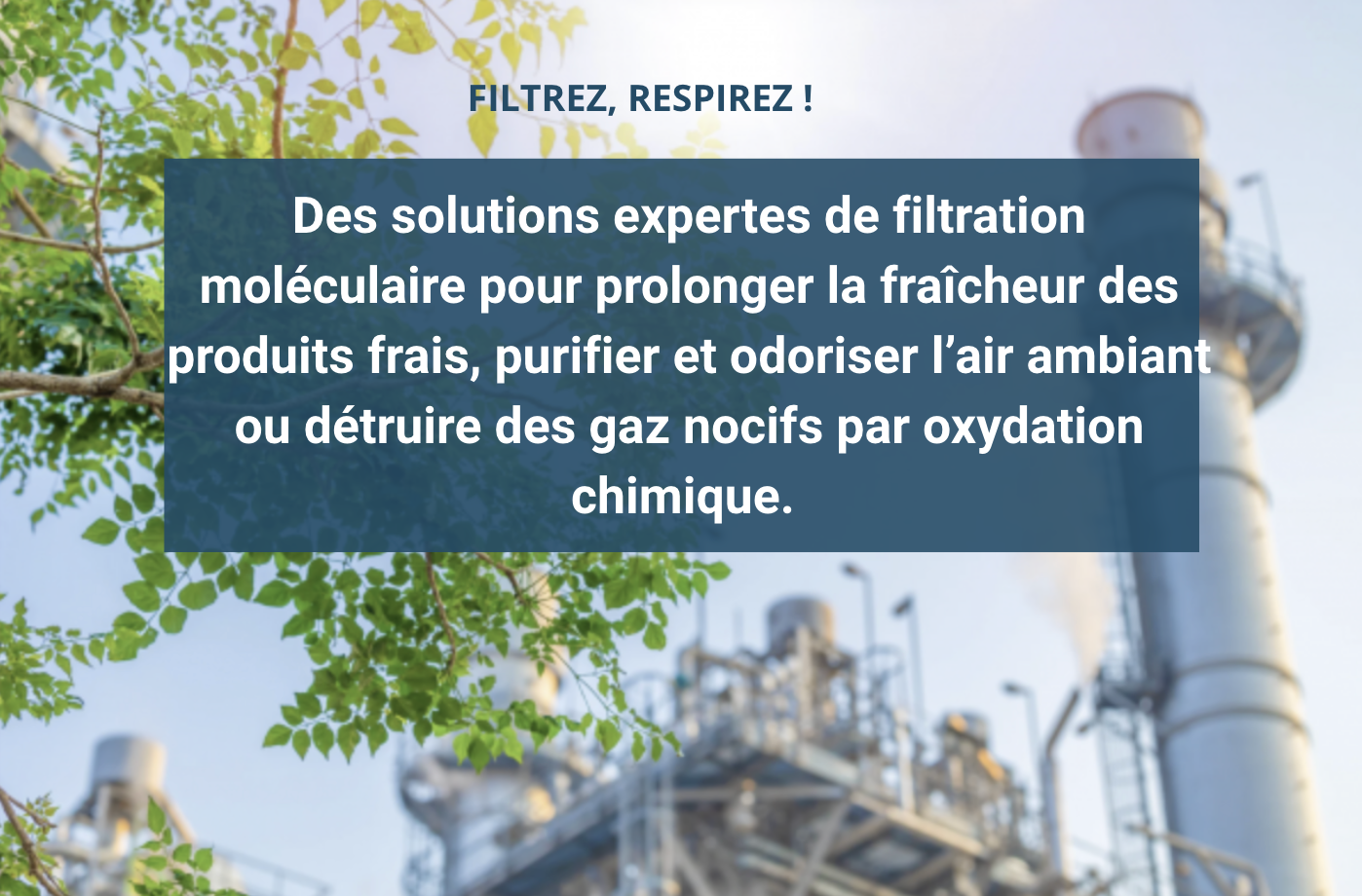 Des solutions expertes de filtration moléculaire pour prolonger la fraîcheur des produits frais, purifier et odoriser l’air ambiant ou détruire des gaz nocifs par oxydation chimique.